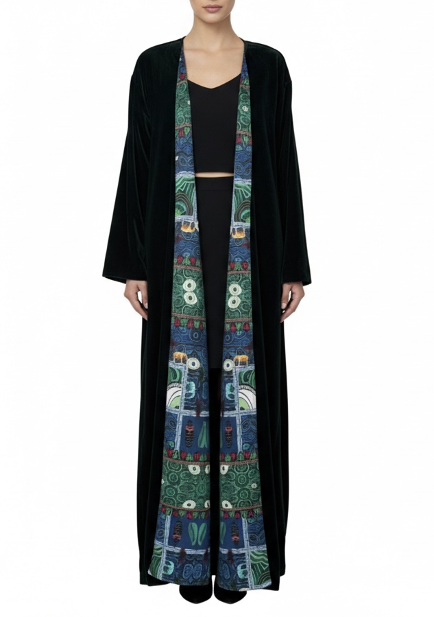 Can be worn as a Bisht, Cardigan, or Abaya.